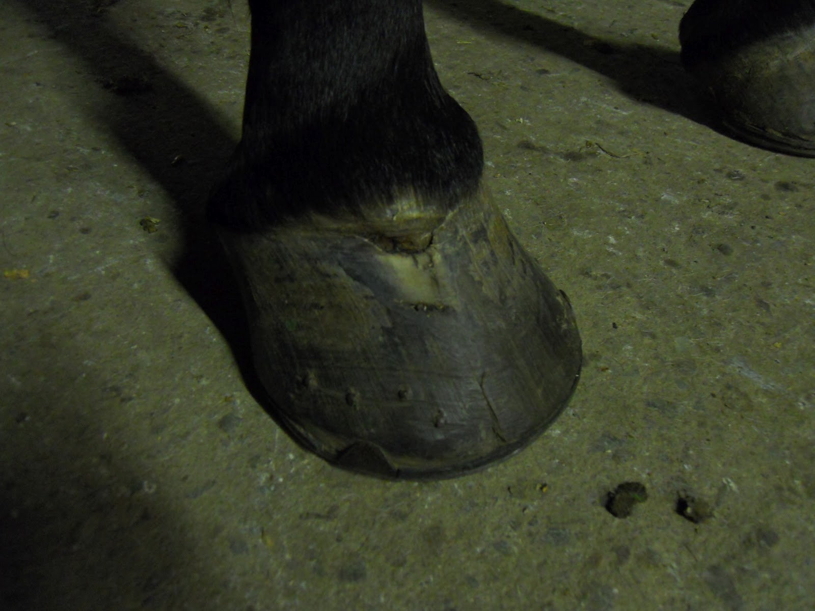 | 9/13/12: Second abscess holes below the first, which was dug out. Crack still at the toe. |