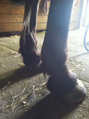 Our first lesson is scheduled for tonight, a 30 minute intro/checkin with the new trainer, so I wanted to take some time and make him more presentable. We started with a bit of cleanup. I clipped his fetlocks, trimmed his ergots and chestnuts, and rediscovered his bridle path. He grows more ergot than any horse I have ever known – no exaggeration, the one on his RF was 1.5″ long – and it’s tough. I keep a hunting knife in my tack trunk for such occasions, and luckily he is quiet and still, because it took some sawing through to get it down.