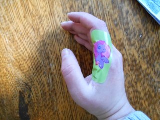 Better news: the oddly shaped yet adorable My Little Pony bandaids I bought like 6 years ago are perfect for my purposes!