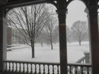 Still snowing hard, temperature dropping fast, and no barn for me today. This is what it looked like outside my office window last night; add another foot of snow and you’ve got this morning.