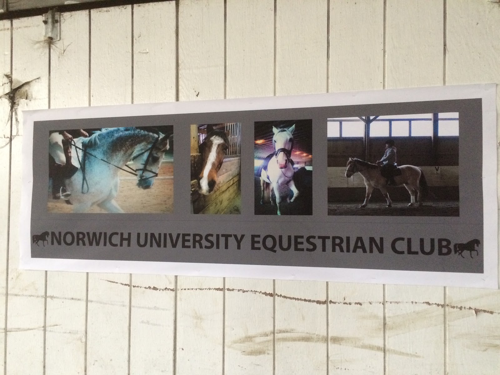 We discovered while riding that there is a new banner in the arena and that Tris is apparently one of the new mascots for the local university riding team. He was used in one of their shows once and was apparently such an exemplary citizen that he offered up a polite, balanced canter when one of the walk-trot riders put his heel too far back. Ha.