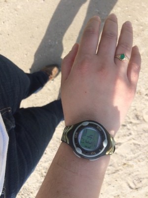 The sports watch is useful because it is water resistant, so I don’t have to worry about taking it off before bathing or hosing Tris down. It has a basic stopwatch function that can be useful for trot sets, except I have to keep looking at it constantly. The one pictured above is super-basic and cheap. I think it cost around $15. Its downside is that I have yet to find one that really holds up well to barn work. They tend to crap out after a few years – dust in the gears, just planned obsolescence, some combination of that.