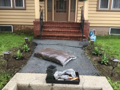 Step 1: Dig out the turf in a small line on either side of the walkway. This sucked. A lot. I can’t overestimate how much it sucked. I did the whole thing on my knees with a plastic hand tool, which really aggravated my back. I can’t recommend it.