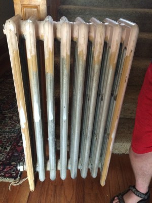 However: all of the radiators in the house (there are eight in total) were painted to match their rooms. That paint is either a) ugly or b) peeling badly. In some cases, both!