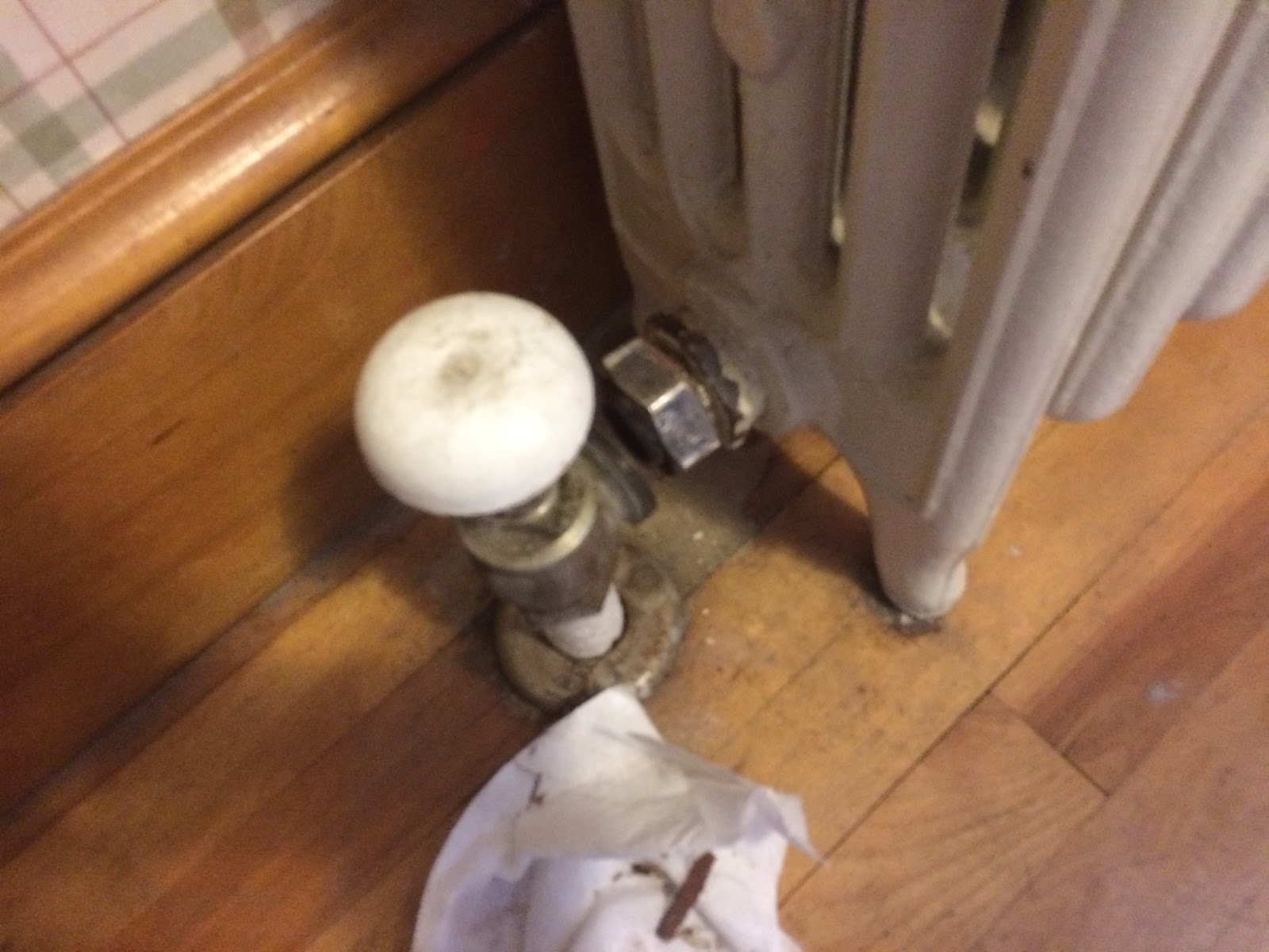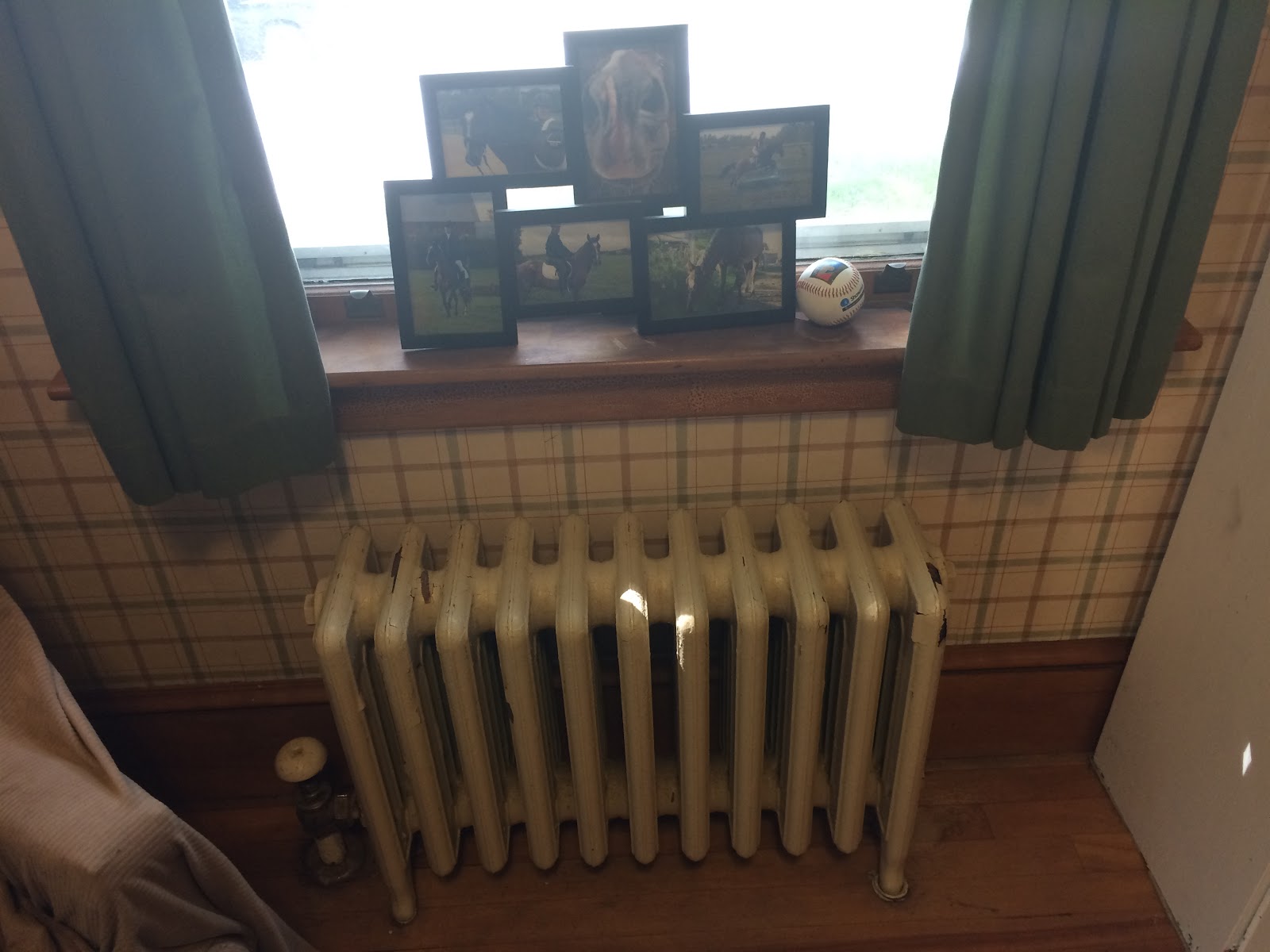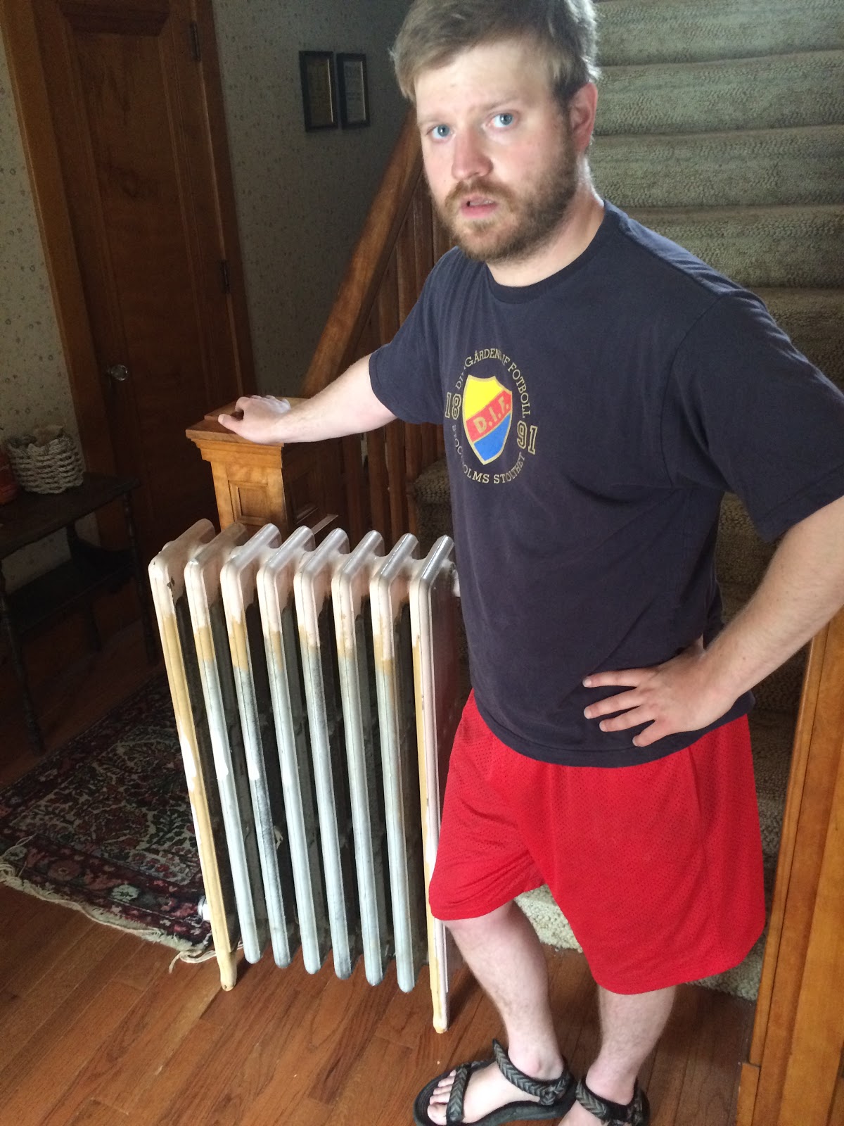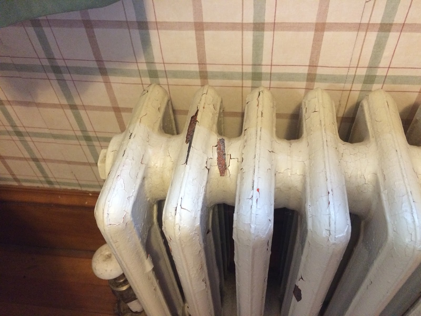 However: all of the radiators in the house (there are eight in total) were painted to match their rooms. That paint is either a) ugly or b) peeling badly. In some cases, both!