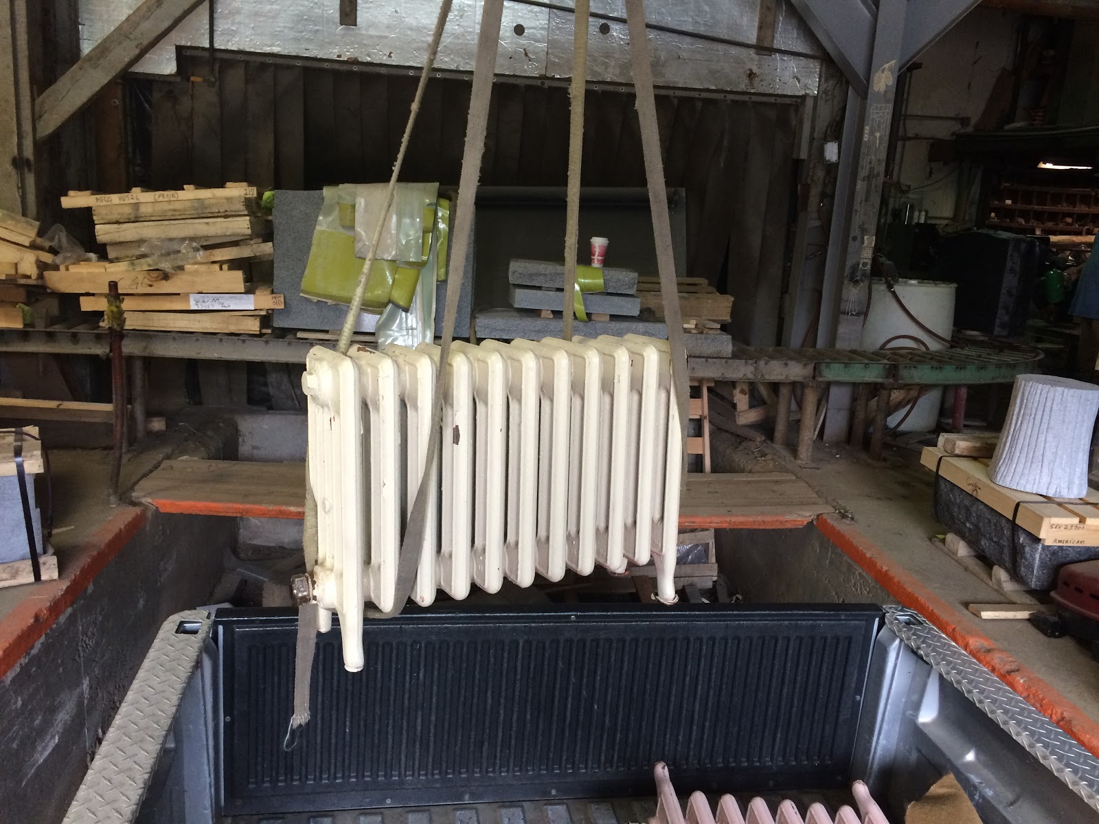 I grew up in a house that had cast iron radiators – I don't think there's any way to accurately describe just how heavy and awkward those suckers are. I feel for you but once they're back in place, you'll be so happy you didn't paint them or cover them up. Nothing better than sitting on one when its freezing out. ๐