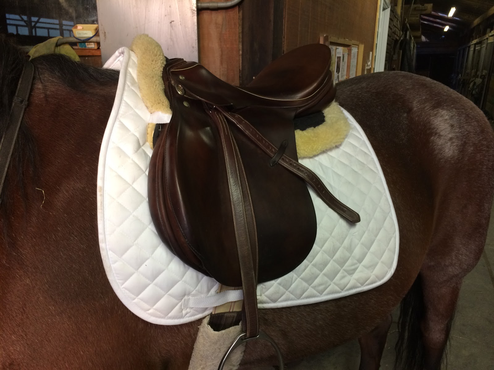 First problem: I haven’t ridden in my jump saddle in at least a year. Sonofabitch, ow, said my knees and my ass. Short stirrups + hard as a rock old Passier = some adjustment necessary.