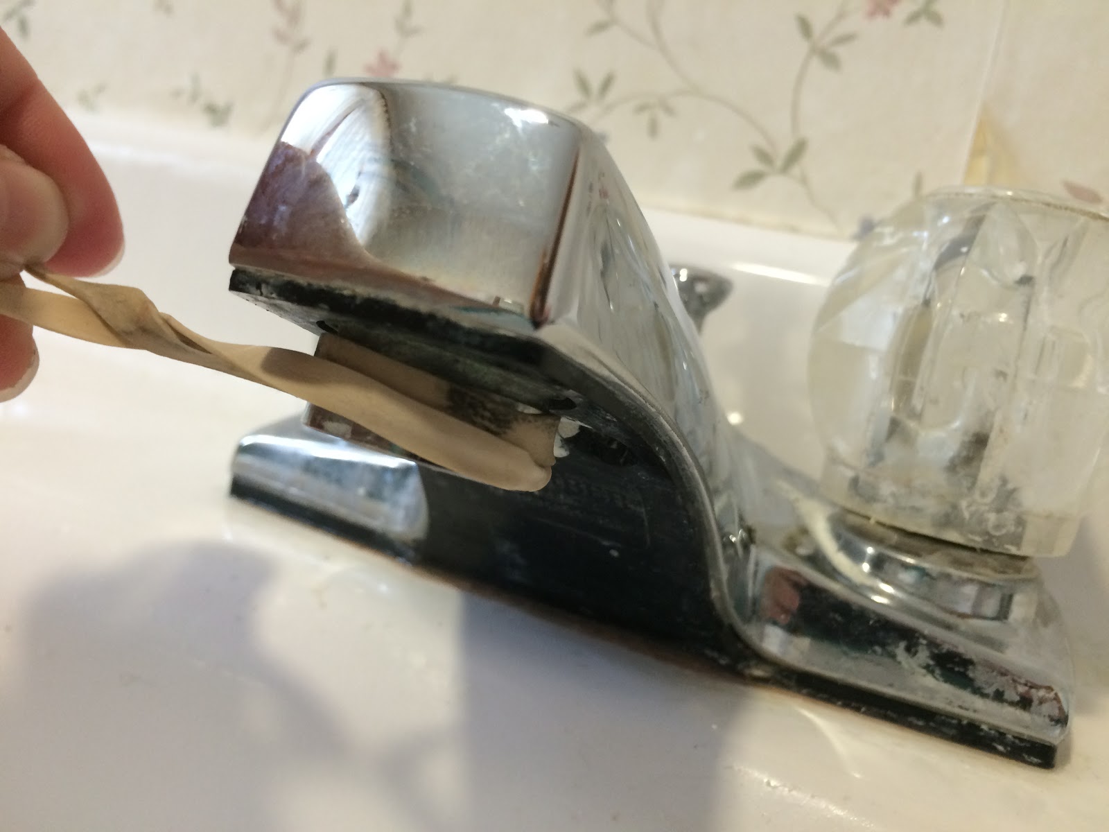 Step 3: wrap the old aerator in an elastic. this will provide better purchase for the wrench and make sure it doesn’t scratch the metal