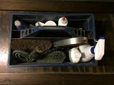 Once upon a time, I boarded at a barn where the only thing you were allowed to have outside of your tack trunk was one pair of tall boots. That’s it. My tack trunk is an old wooden chest that served as my great-great-uncle’s tool chest, and as such it does not have modern conveniences like space for full grooming kits.