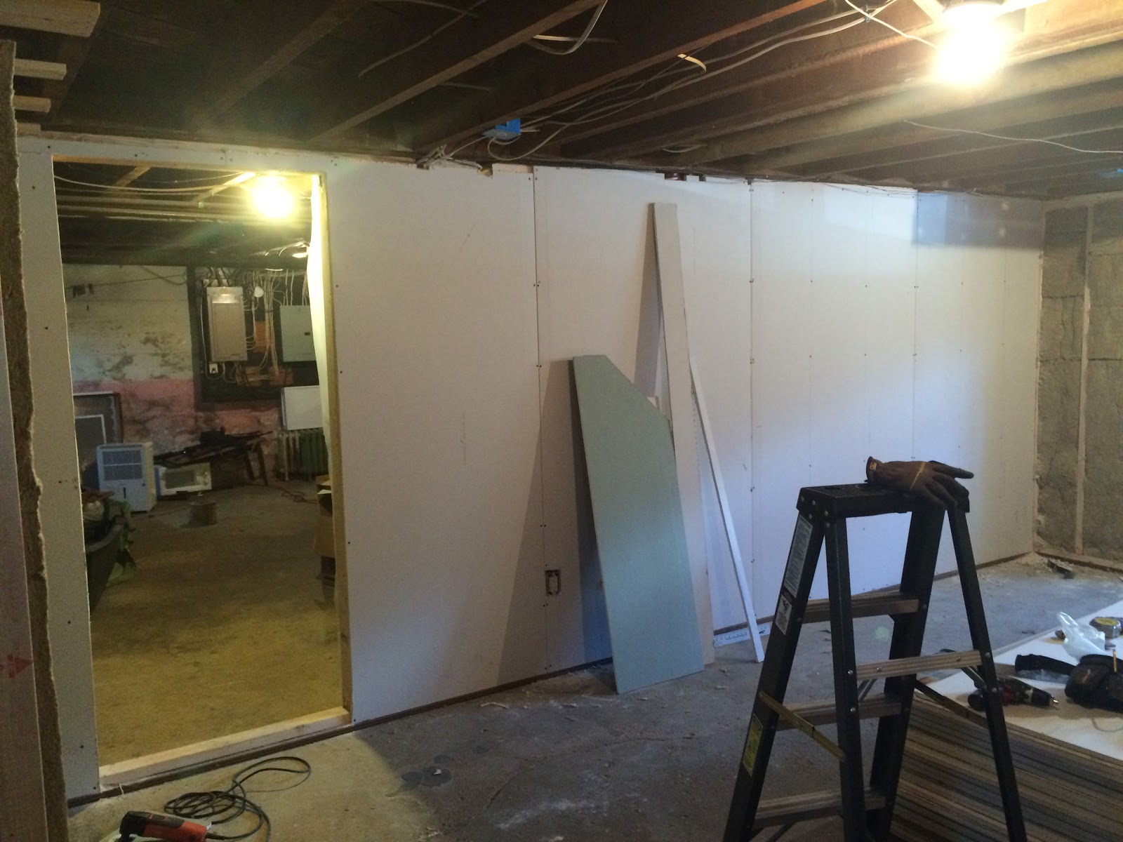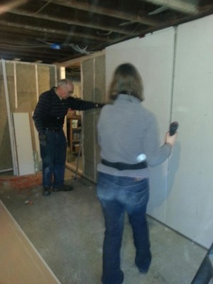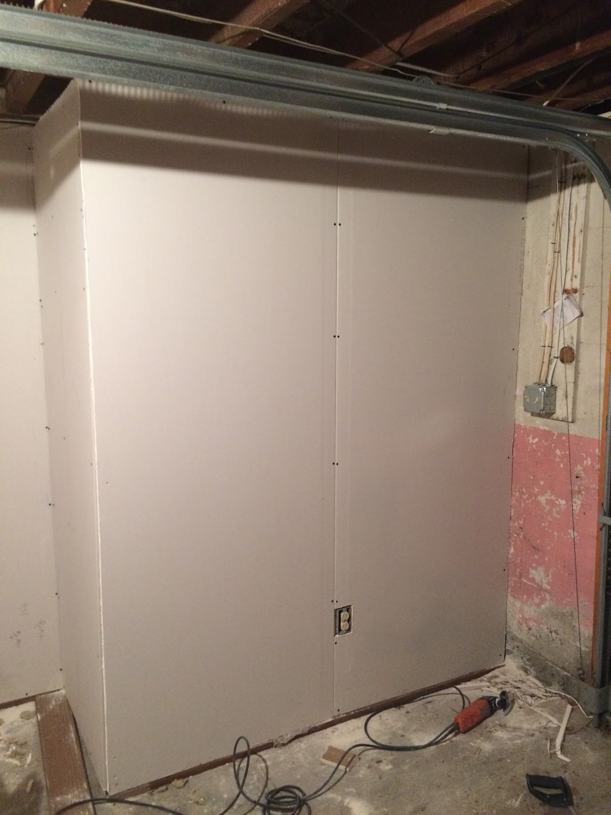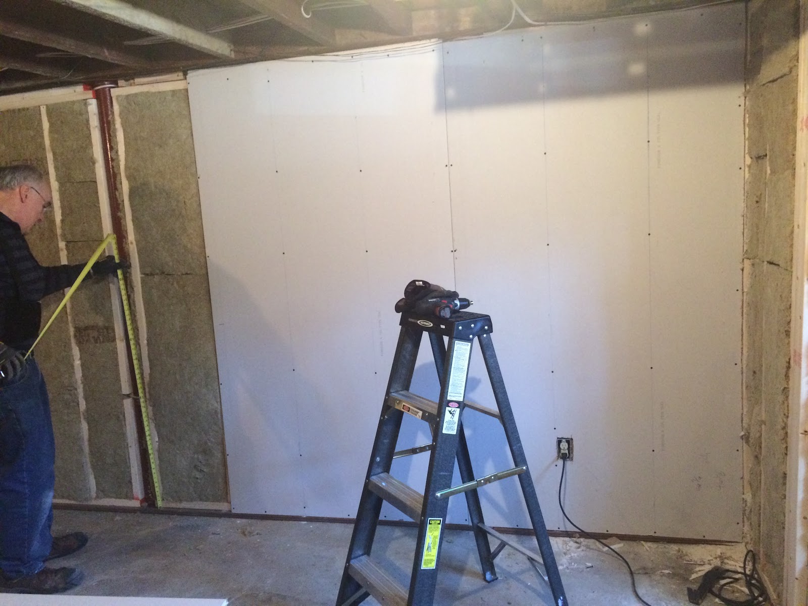 Last weekend, my parents visited and we did a number of projects around the house. I spent a significant chunk of time helping my dad continue to work on the wall in our basement that separates the garage space from the main basement space. It has to have 5/8″ sheetrock on it to help it be fireproof so that it meets code. I guess garages are prime spaces to start fires. It will also have to be air-sealed so that noxious fumes can’t get into the rest of the basement.