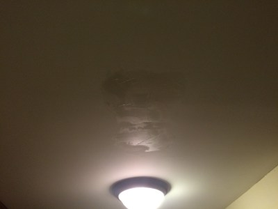 Step 7: Another 24 hours, another sanding! Hopefully this is the last one. Honestly, I could still do another layer on the ceiling but I ran out of fucks. It looks totally fine except on close inspection. My plan is to leave it alone until we get around to doing the rest of the kitchen renovations in mumblemumble years, and then do one last finishing layer before we repaint the ceiling.