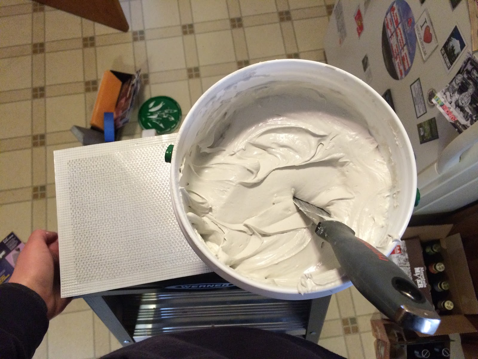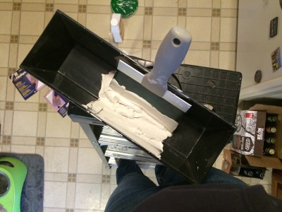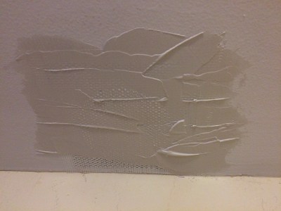 Step 6: Yep, another layer of plaster, with an even wider putty knife, that I didn’t take a picture of, but it’s 12″ wide and the goal is big sweeping strokes for a minimum of edges or lines.