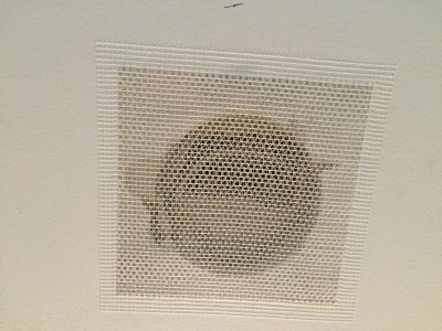 Step 1: use these mesh thingies over the big holes. The holes are about 4″ in diameter, and these squares are 6″x6″.