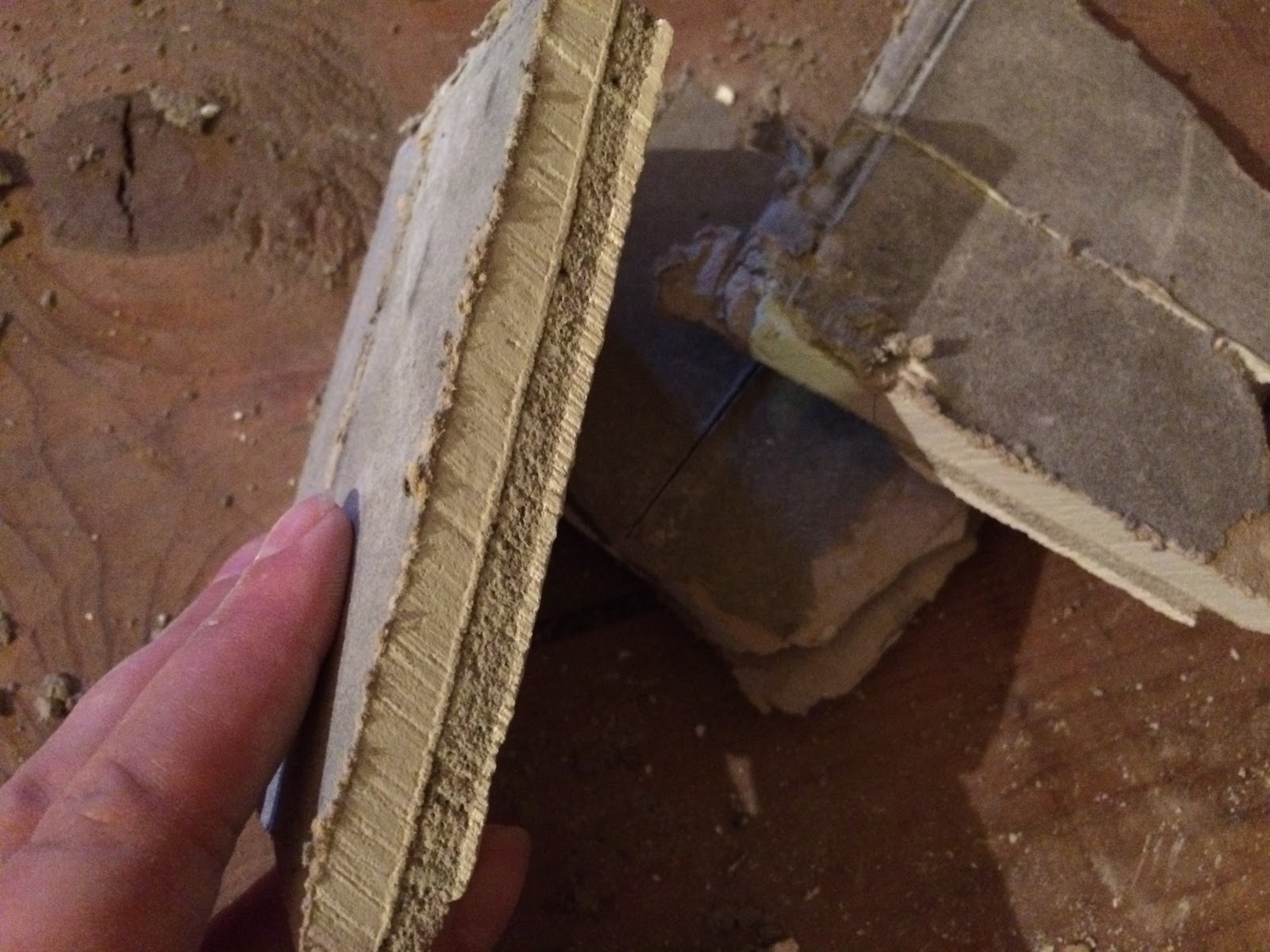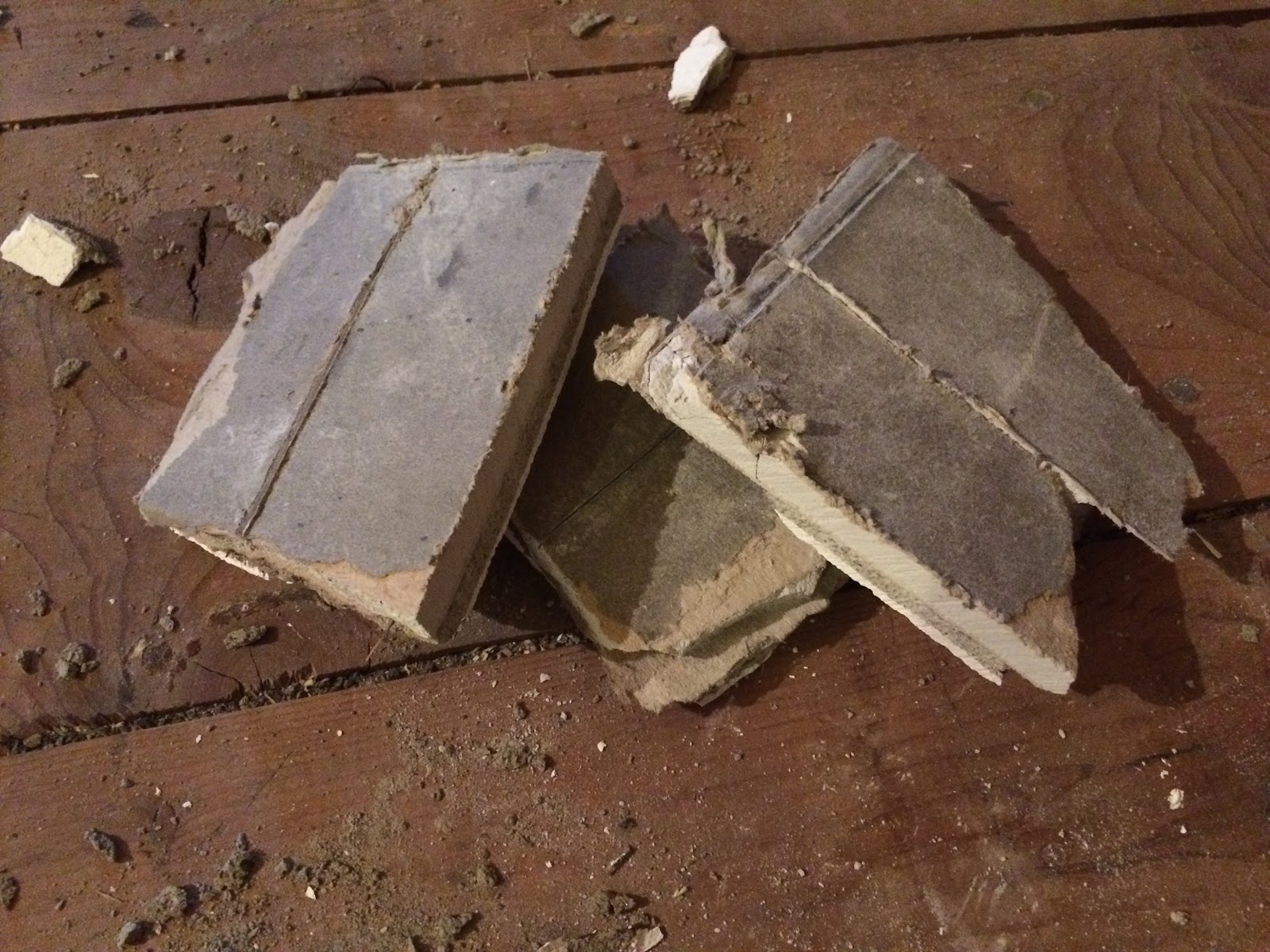 Unfortunately, that meant that it did not cut or break like the sheetrock I was used to, so after several attempts to get a piece that would fit into the gap, I was left with just a pile of broken sheetrock.