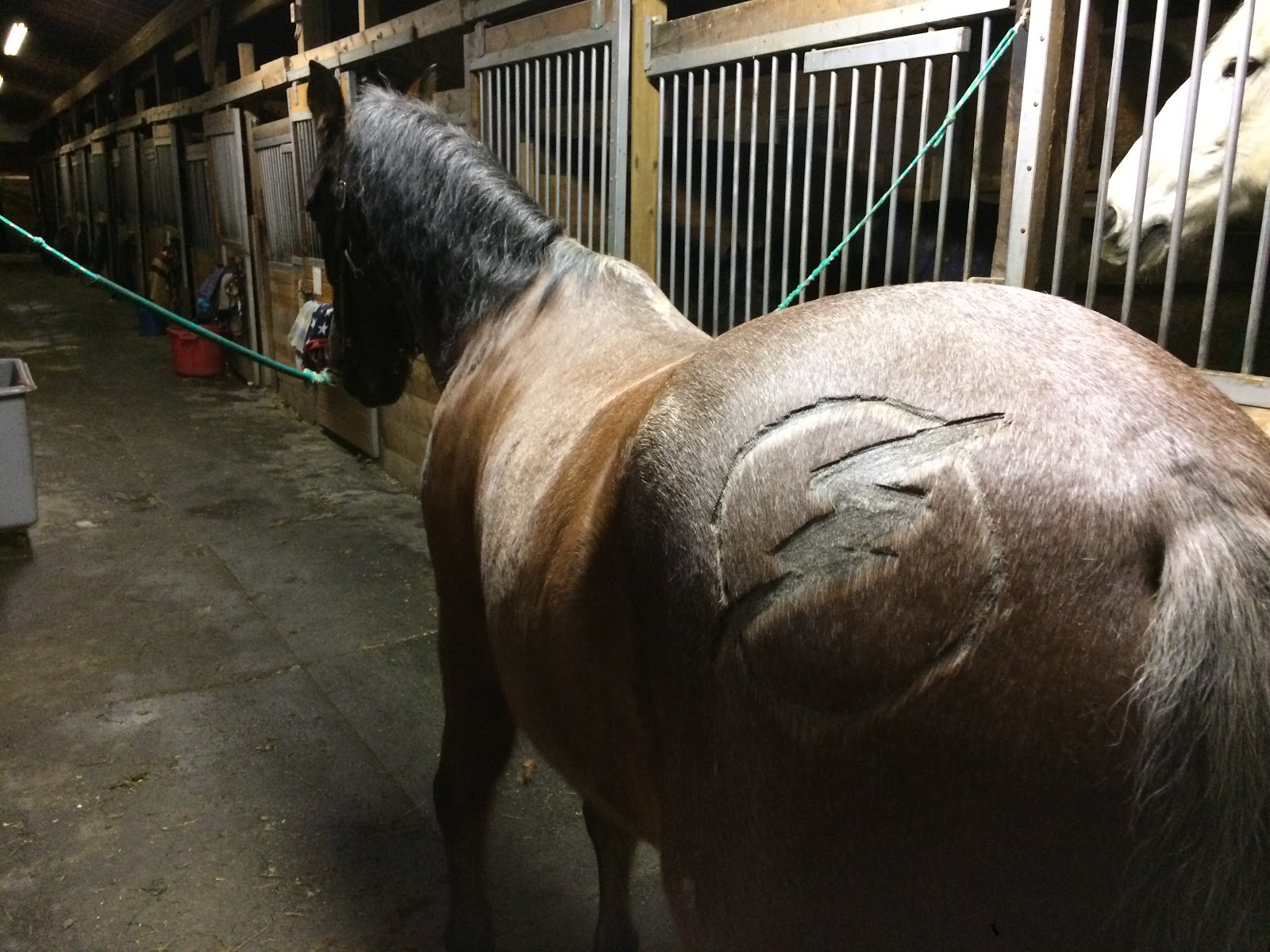 Somehow, every year, I manage to make clipping my horse into some kind of saga. This year, I wavered about what kind of clip to do, and decided on Irish…sort of.