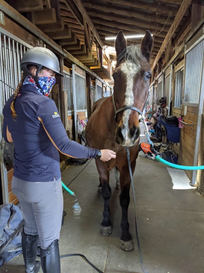 We took about two weeks off, and then I eased back in very slowly. I went mostly just for long grooming sessions. I got on for short wanders up and down the road. I did not really school a whole lot. After a few weeks of that, I cleared a semi-permanent space in my work calendar and committed fully to immovable weekly lessons. Previously, I lessoned as much as possible, but it was hard to make the barn manager’s schedule match my schedule for more than a few weeks in a row.