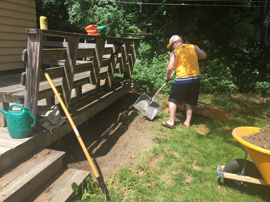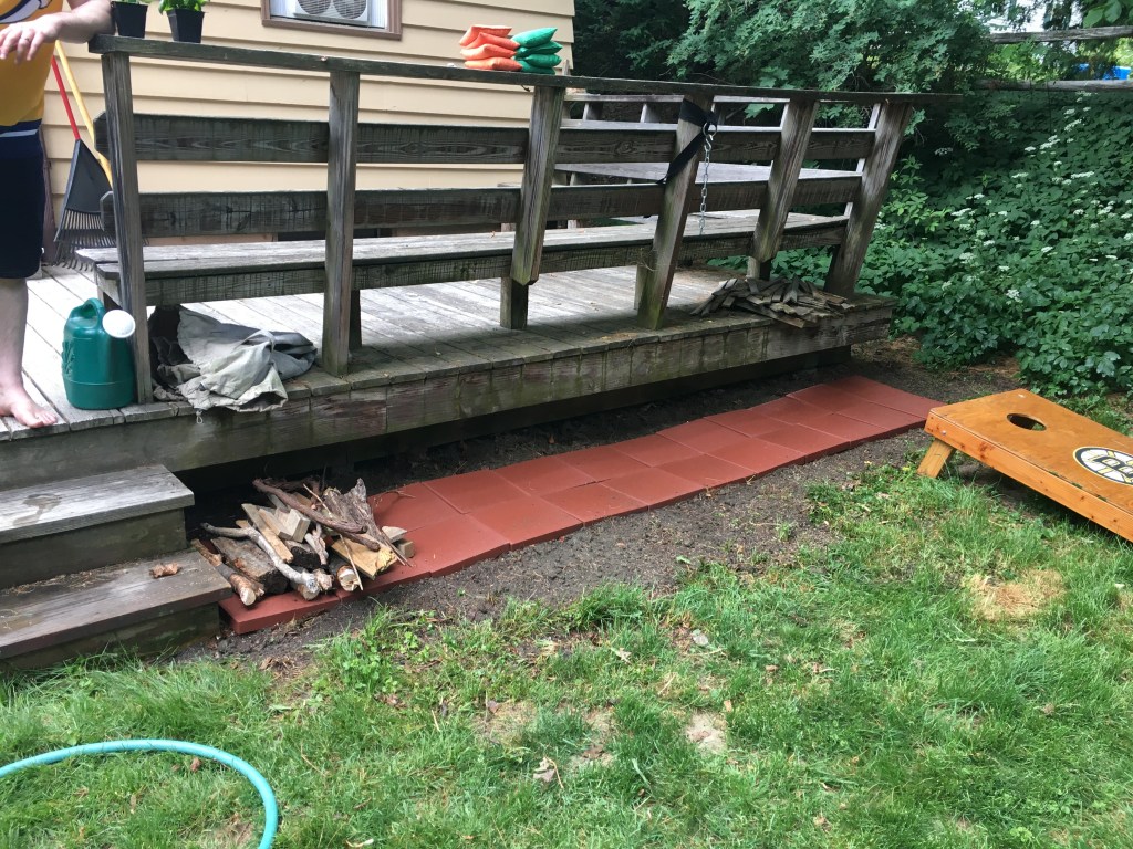 One short but helpful project was to dig all the weeds & crap out from this section of the yard, which was where we stored the wood for the fire pit, level it off, and put these pavers in so the wood would not rot into the ground the way it had been. We then filled up the length of it with wood we pulled from the brush pile in the back lot and had an easy access for the fire pit. We did a bunch of fires this summer with friends over takeout food, for a safe activity during that brief quieter window.