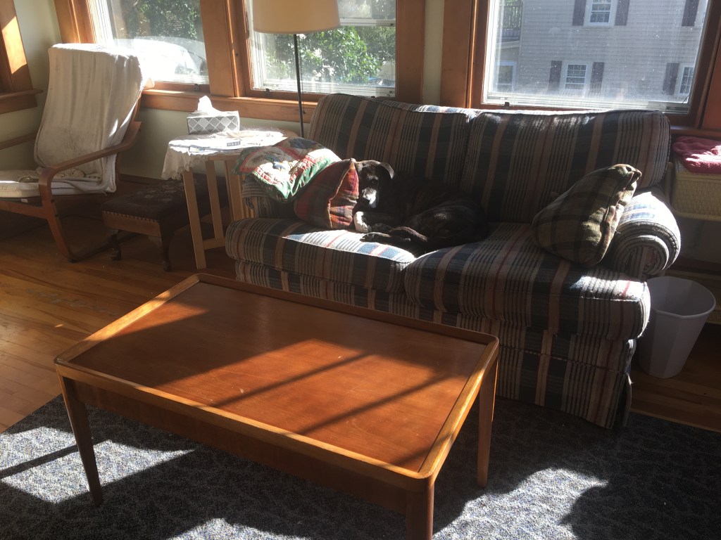 The small table in the foreground is one I grew up with that my mother was relocating as she gets ready to move, so now it lives in the sunroom. There are a few things I need to continue tweaking about the sunroom; the footstool you can see in the back left needs a better home. To the right of this image is a corner that has accumulated random things that need to be sorted out.