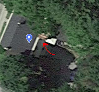 Above is a very poor quality Google Maps satellite photo of our house. The sleeping porch is largely obscured by a tree but you can see where I’ve pointed at it with the red arrow and you can also see our problem. The roof is quite rusted. That doesn’t automatically mean it’s bad, but…