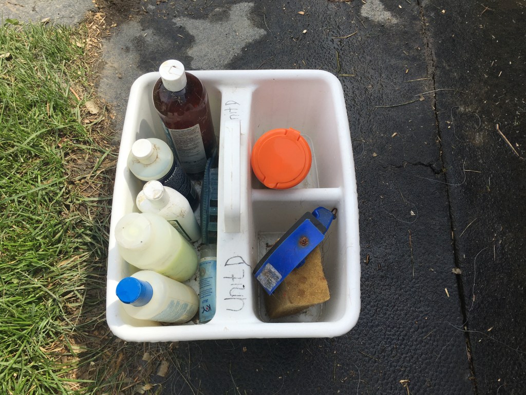 I bathe Tristan always before shows, weather permitting, and maybe a handful of other times during the summer. I’m pretty neurotic about temperatures – below 70 feels a bit too cold for me for a bath just for fun – so it’s become an activity that we can do when it’s too hot to ride too much, but I want to get some interaction with him.