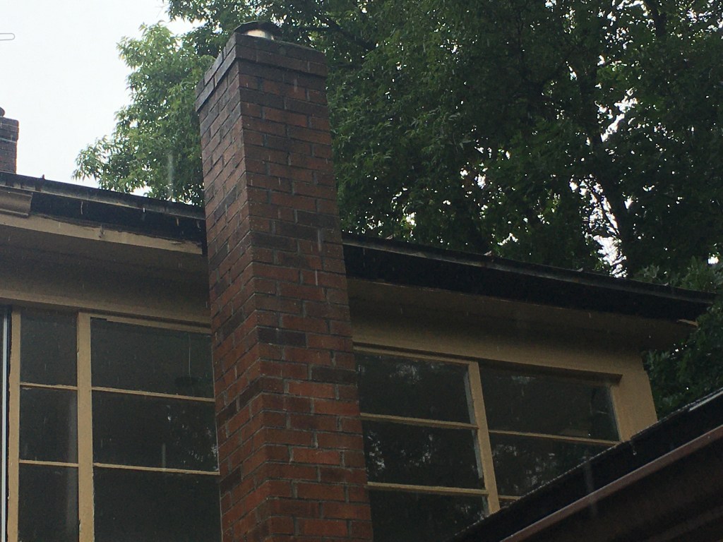 The angle of this photo makes it look like the roof is flat; I promise, it has angle!