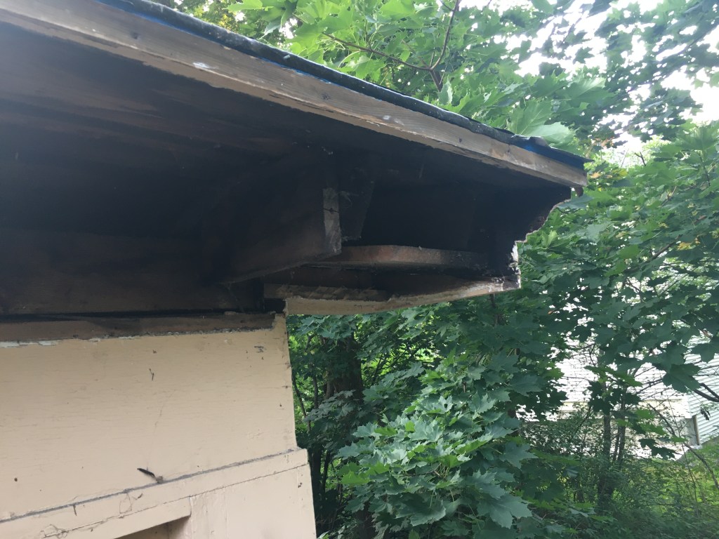 First, the contractor pulled out the old fascia/trim to get a look at things and to match the trim (which is matched around the house and part of the original look).