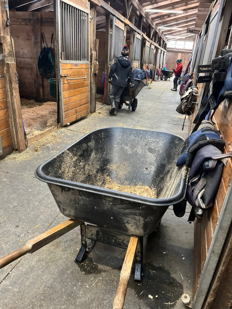 I have been working at the barn a lot, in part due to life circumstances leading to some tough financial stuff, and in part because it empties my brain in a way that I deeply need. It is working on both counts.