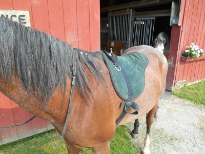 God damn it is a lot of extra steps to put a saddle on. Yes, I’m that lazy sometimes. Up and down the tack room stairs, up and down the barn aisle, all the buckles, the progressive tightening of the girth, on and on. With bareback, I grabbed a bridle and a quarter sheet and we were off.