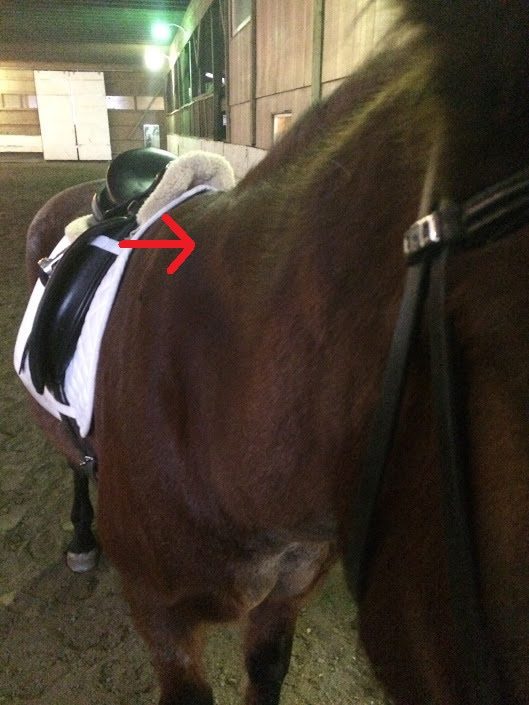 I called over the barn manager, who is infinitely more patient with me than she really ought to be, and we both examined and finally shrugged. He is looking and feeling the best he has in a long time. It wasn’t sore in any way. We jointly decided that I should get on and see how he felt. So I saddled up – the edema was back of the girth area – and hopped on.