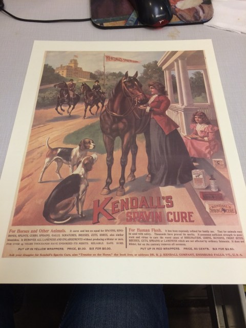 Most of my horse-themed art will go up on the walls. I’ve previously reviewed the various pieces I own here. I’ll also be putting up my Kendall’s Spavin Cure poster and getting a high quality print of the amazing cartoon of Tristan that Emilie drew for me.