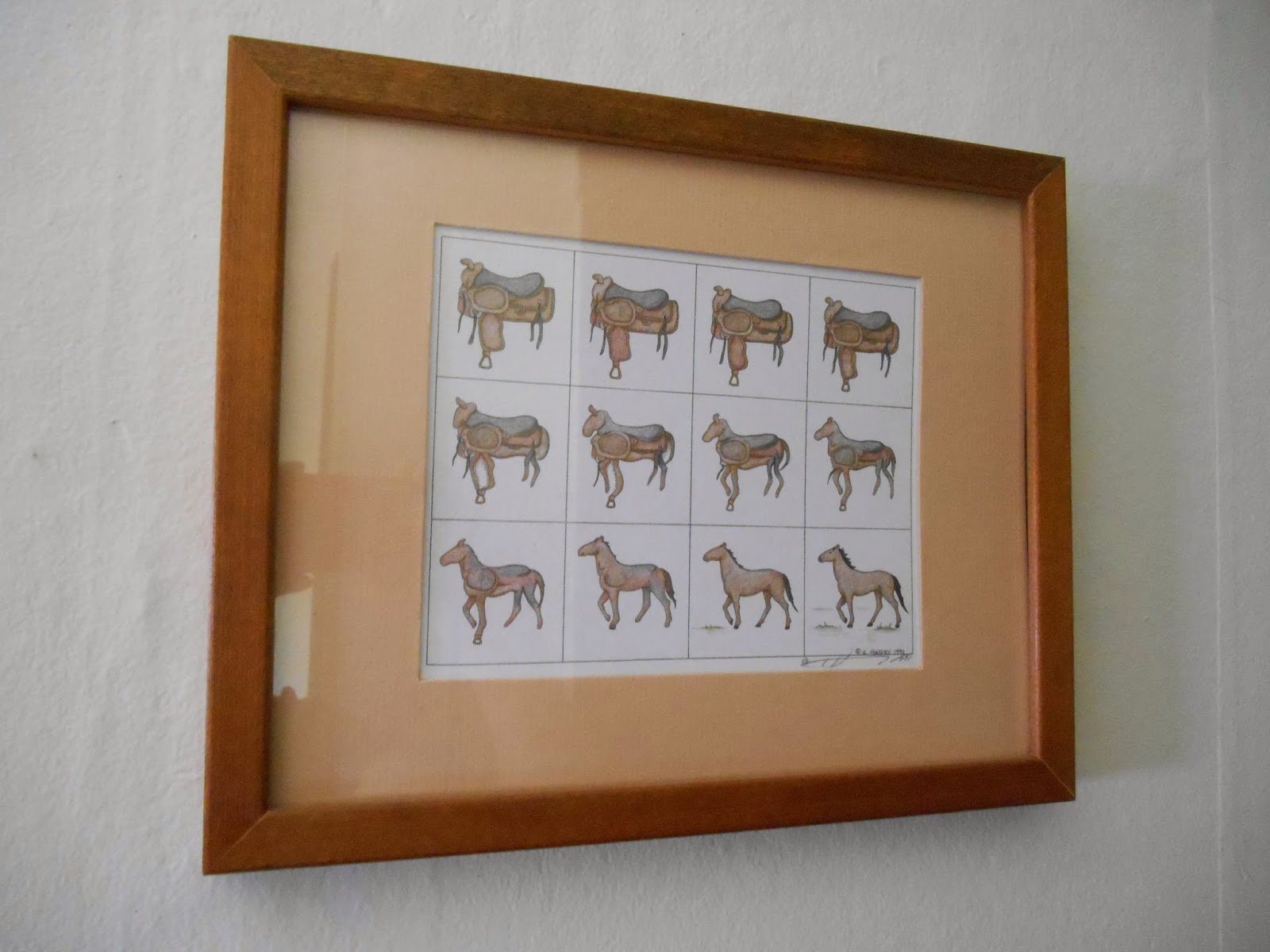 Most of my horse-themed art will go up on the walls. I’ve previously reviewed the various pieces I own here. I’ll also be putting up my Kendall’s Spavin Cure poster and getting a high quality print of the amazing cartoon of Tristan that Emilie drew for me.
