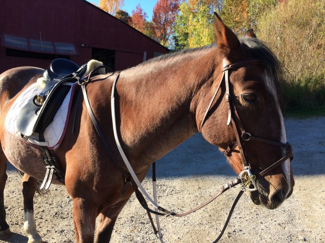 I don’t know why I’ve never tried it. I even own one that has sat, unused, for several years now. I have no good reasons. Partially because no trainer I’ve ever ridden with has suggested it, and it’s only fairly recently that I’ve felt more free to tinker with things by myself. Partially I’ve felt like a failure in figuring things out myself. Partially he HAS been mostly manageable without it.
