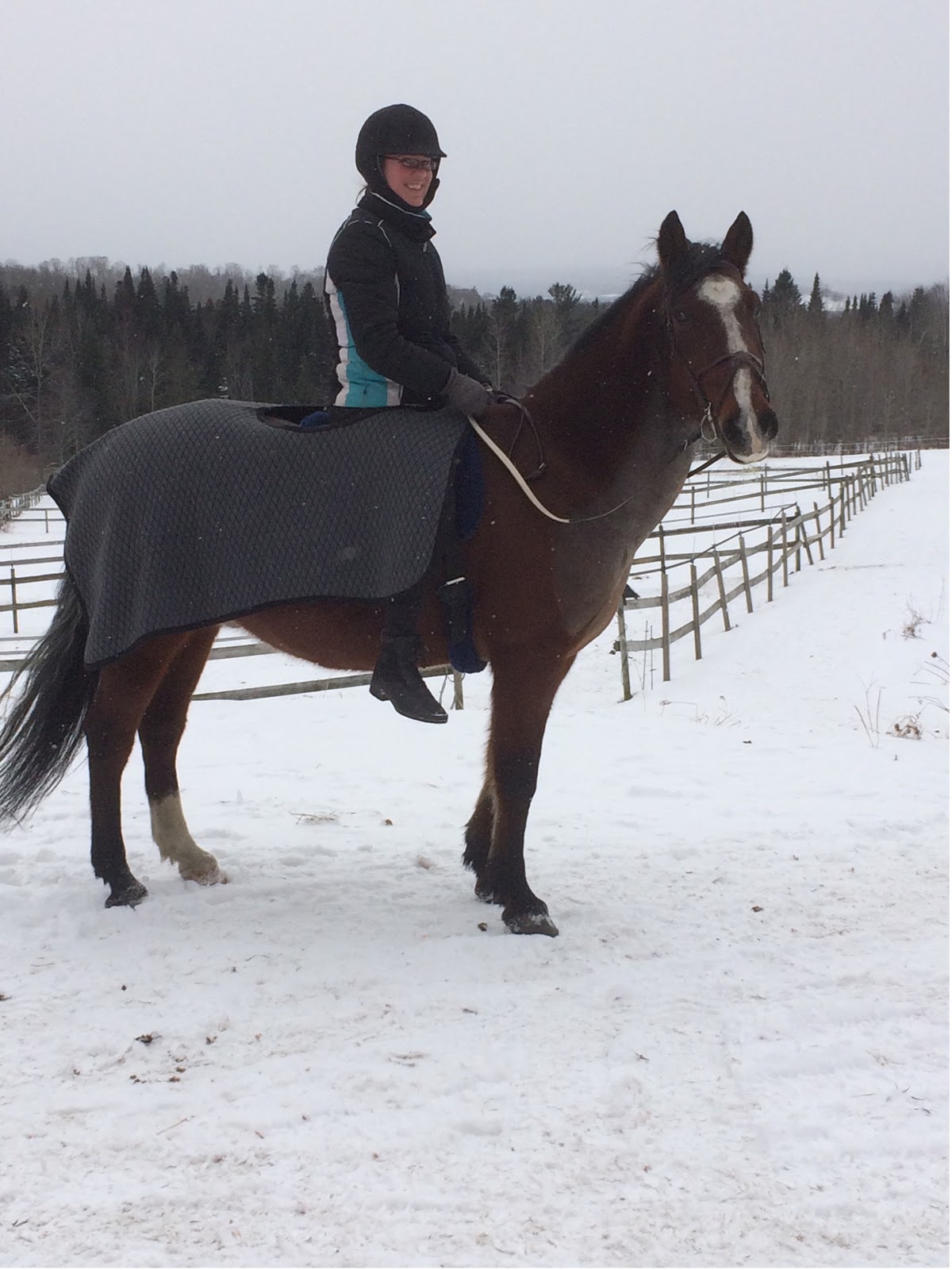 It may seem absurd, but I’ve never actually ridden this horse in a running martingale before. He’s a perfect candidate for it. His default naughty behavior has always been to fling his head in some way, usually as a precursor to then slamming his shoulders around. Up, sideways, both at the same time, you name it: his neck and head are over-proportioned for his body and they are his first fallback.