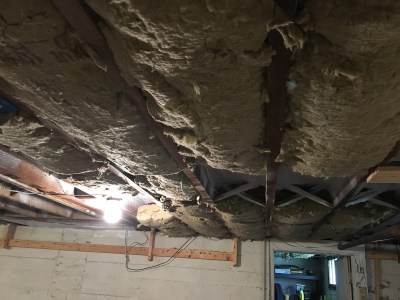 The bonus garage is part of a 1970s era addition that was not terribly well done. In particular, when they added new foundation, they did not grade well at all. They left the dirt uneven with huge holes around the edges of the foundation, both inside and outside. Our property is all on a hill. Over the years, this has meant water coming down the hill, getting inside the foundation, collecting in the holes, and in the winter, freezing. That means foundation cracks.