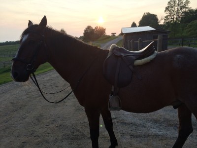 All in all, it was one of those educational lessons, where you’re wrung out and tired but there was progression. One major bright spot: his canter is so much better, more adjustable, more steerable. I could sit deep and bring my hips to my hands and turn him with my outside aids and all of a sudden I had this little bouncy ball underneath me (or at least the seeds of it) and I could do what I wanted with it. T. even praised our canter, which…never happens. Guess that flatwork is paying off.