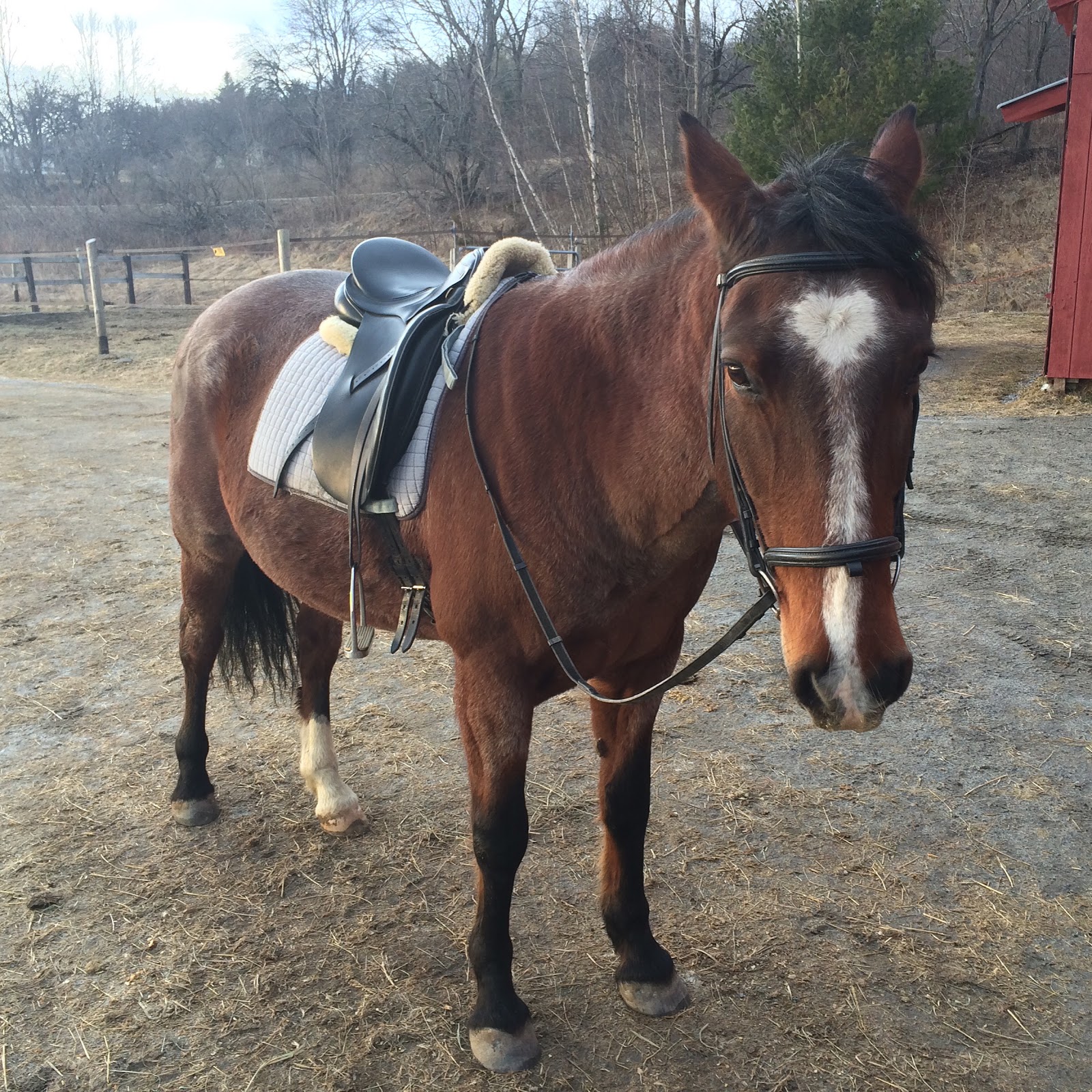 Sunday: gorgeous sunny day, blue sky, light breeze. We went for a 2 mile hack up and down the road with a friend who’s conditioning her new horse. I thought about going up and down the hayfield hill for some additional work, but the trainer was showing a sales horse in the outdoor arena and a galloping mustang probably would’ve been more excitement than they really needed.
