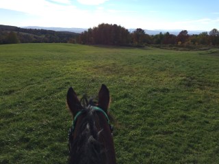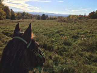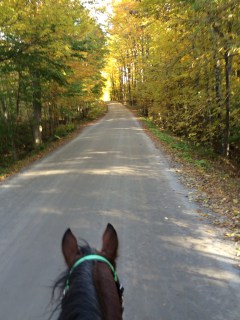 The trouble here is in fact finding level ground. All of our pastures are on hills and even when I boarded and lived in Addison County, part of the Lake Champlain basin and the flattest part of the state, it still wasn’t what you’d call flat. It rolled quite a bit, just not as dramatically as most of the state. So even just going out on a hack on the roads works those glutes. And with 70% of the state’s roads still dirt, you’ve got a lot of territory to explore.