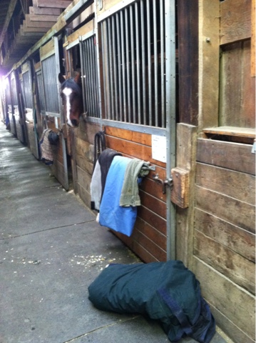Last Friday night, I did night check, since one of the regular barn workers was visiting with the trainer in Florida. (And posting photos of kayaking in t-shirts on Facebook, sob.) I hadn’t done it in nearly a year, so the barn manager left me a list of what the current night check routine is.